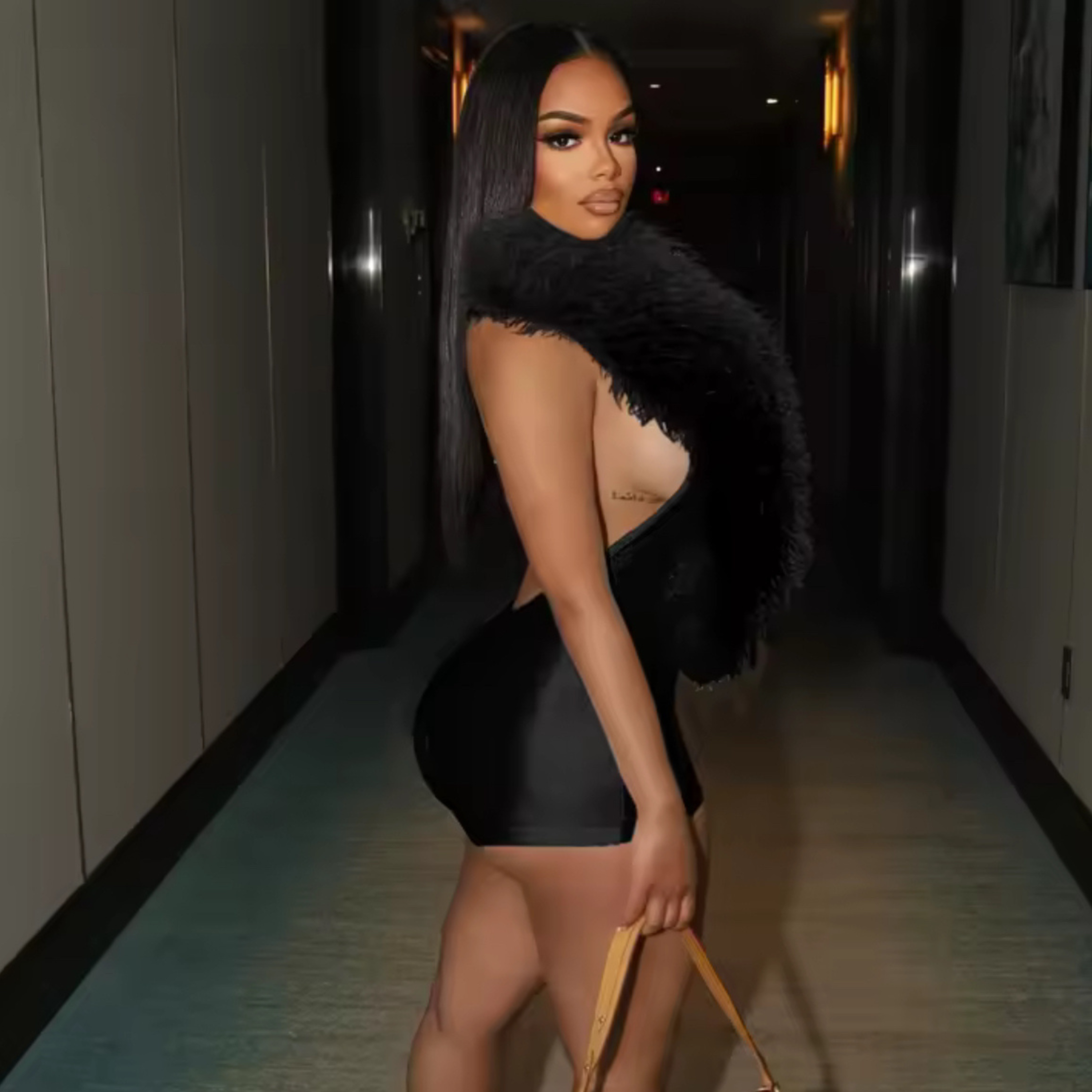 Designed for the confident woman who commands attention, this Spicy Girl sexy nightclub dress is the epitome of bold style. The sleeveless, backless design with a high slit and hip-hugging silhouette creates an unforgettable, glamorous look.
